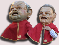 Cabezudos: Los gigantes y cabezudos son una tradición popular celebrada en muchas fiestas locales de Europa occidental y América Latina. La tradición consiste en sacar en desfile ciertas figuras a hombros, que normalmente representan a personajes populares locales o a figuras mitológicas, bailando y animando o persiguiendo a la gente que acude a la celebración.en los "cabezudos" (también llamados kilikis), de menor altura, se destaca la proporción de la cabeza, dando un efecto más cómico.