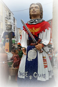 Gigantes: Los "gigantes" (llamados gigantones en parte de España y gigantillas en Santander) tienen una altura desproporcionada, creando un efecto de nobleza, las figuras están contruidos con diversos materiales tanto poliester, cartón-piedra como últimamente fibra de vidrio. El interior está realizado o con cañizo, madera, hierro y aluminio.